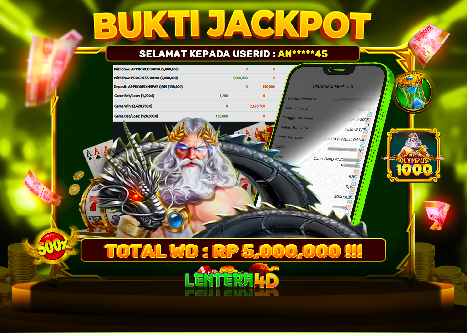 Satu lagi Bukti JP dan Pembarayan Sah Dan Dapat Dipertanggung Jawabkan, WD Berapapun Pasti Dibayar Lunas Hanya di Situs LENTERA 4D. Hati Hati Kepada Pihak Pihak Yang Mengatas namakan Pihak LENTERA4D Untuk Melakukan Penipuan.