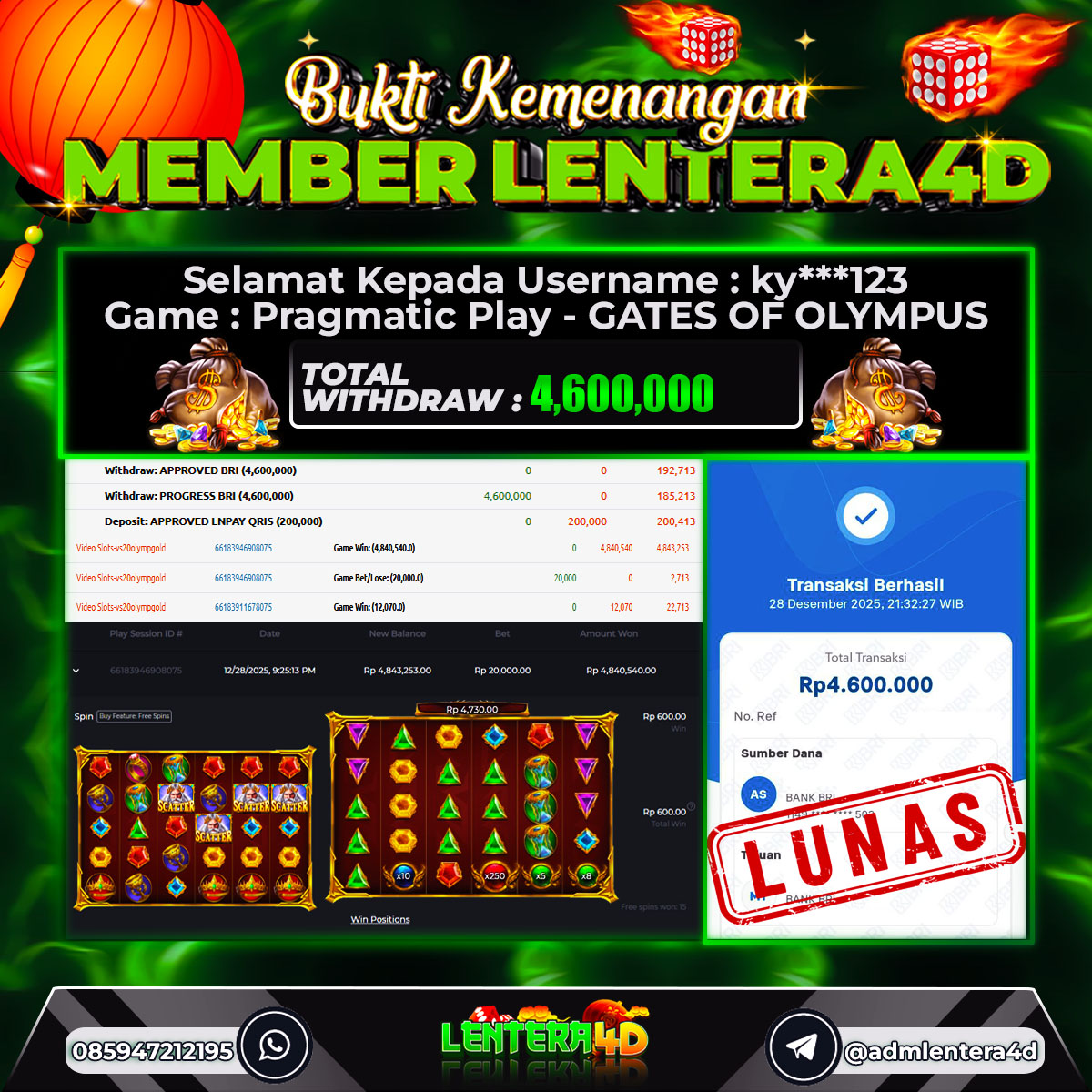 JACKPOT MAIN GATES OF OLYMPUS 28 DESEMBER 2025, Jackpot Slot Gacor, Kemenangan Slot, Bukti Kemenangan Slot, Kemenangan Slot Pragmatic Play, Menang Slot online, Slot Gacor, Situs Aman Terpercaya, WD Berapapun Pasti DI Bayar Tuntas, Maxwin Slot Online.