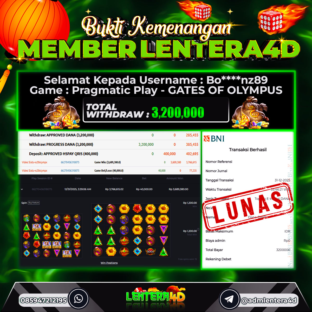 JACKPOT MAIN GATES OF OLYMPUS 31 DESEMBER 2025
