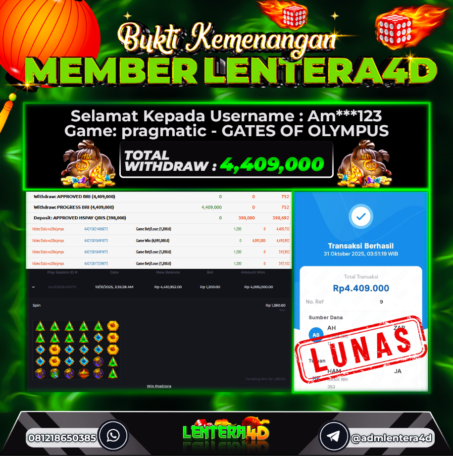 JACKPOT MAIN GATES OF OLYMPUS 31 OKTOBER 2025, Jackpot Slot Gacor, Kemenangan Slot, Bukti Kemenangan Slot, Kemenangan Slot Pragmatic Play, Menang Slot online, Slot Gacor, Situs Aman Terpercaya, WD Berapapun Pasti DI Bayar Tuntas, Maxwin Slot Online.