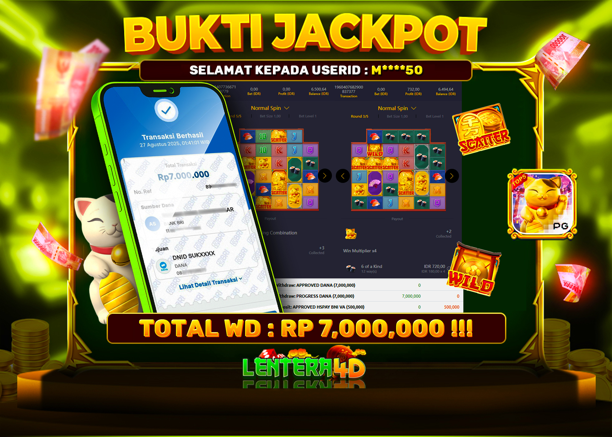 Setiap hari, member Lentera4D berhasil meraih jackpot besar dari berbagai provider slot ternama yang kami sediakan, seperti Pragmatic Play, Habanero, PG Soft, dan masih banyak lagi. Kami secara rutin menampilkan bukti screenshot atau rekapan kemenangan yang berhasil diraih, mulai dari kemenangan ratusan ribu hingga puluhan juta rupiah. Semua slip kemenangan ini kami hadirkan untuk membuktikan bahwa di Lentera4D, peluang menang itu nyata.