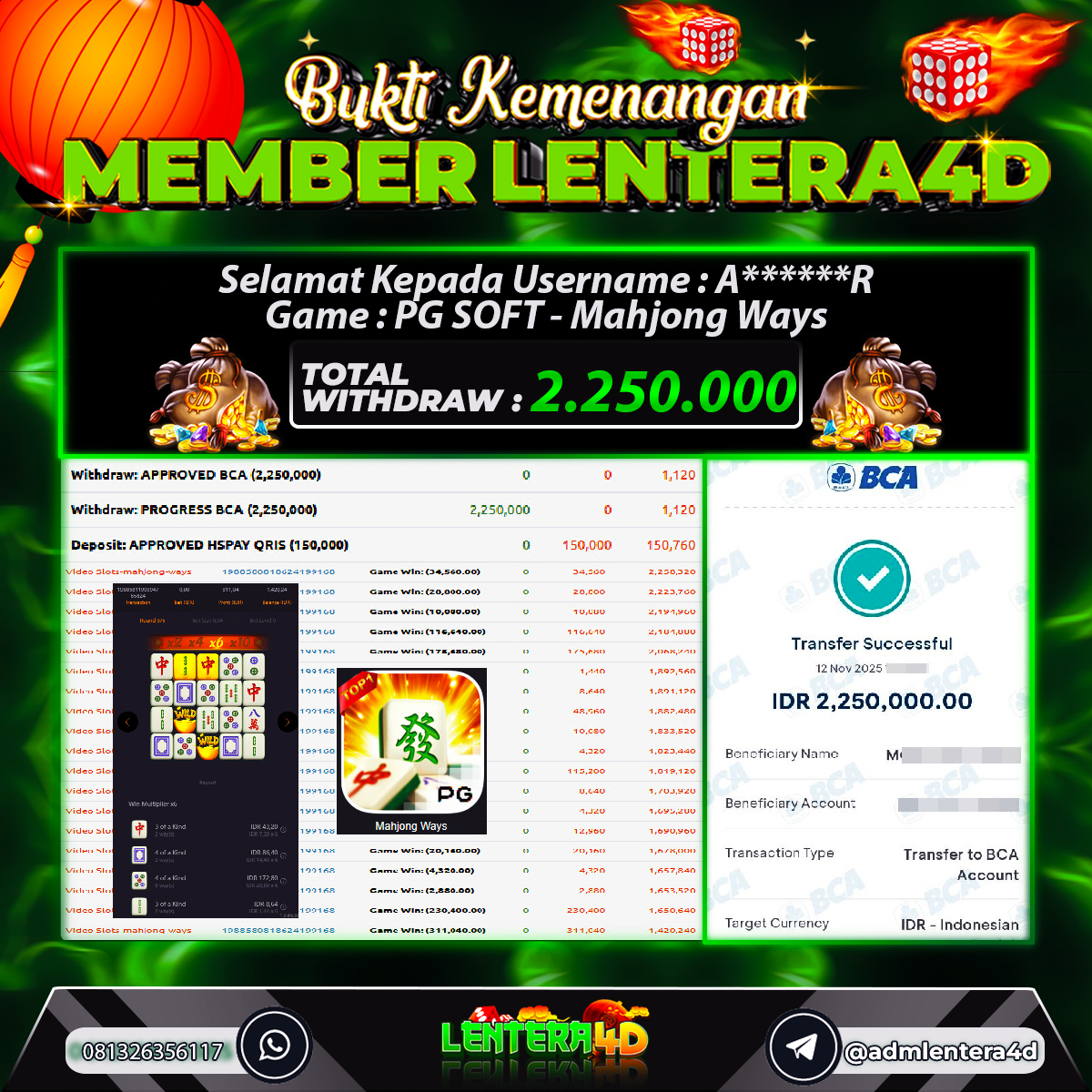 Satu lagi Bukti JP dan Pembarayan Sah Dan Dapat Dipertanggung Jawabkan, WD Berapapun Pasti Dibayar Lunas Hanya di Situs LENTERA 4D. Hati Hati Kepada Pihak Pihak Yang Mengatas namakan Pihak LENTERA4D Untuk Melakukan Penipuan.