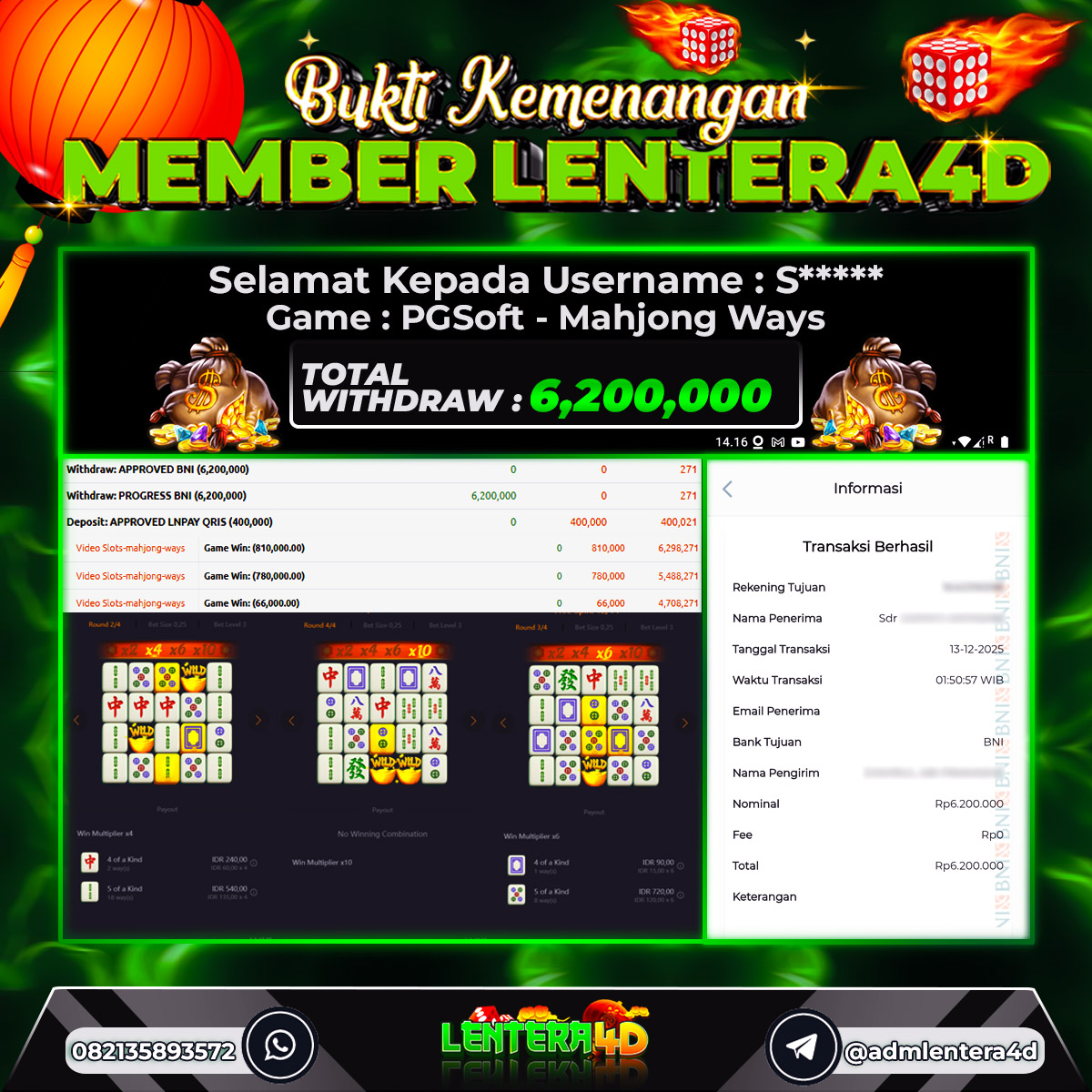 JACKPOT MAIN MAHJONG WAYS 13 DESEMBER 2025, Jackpot Slot Gacor, Kemenangan Slot, Bukti Kemenangan Slot, Kemenangan Slot PG SOFT, Menang Slot online, Slot Gacor, Situs Aman Terpercaya, WD Berapapun Pasti DI Bayar Tuntas, Maxwin Slot Online.