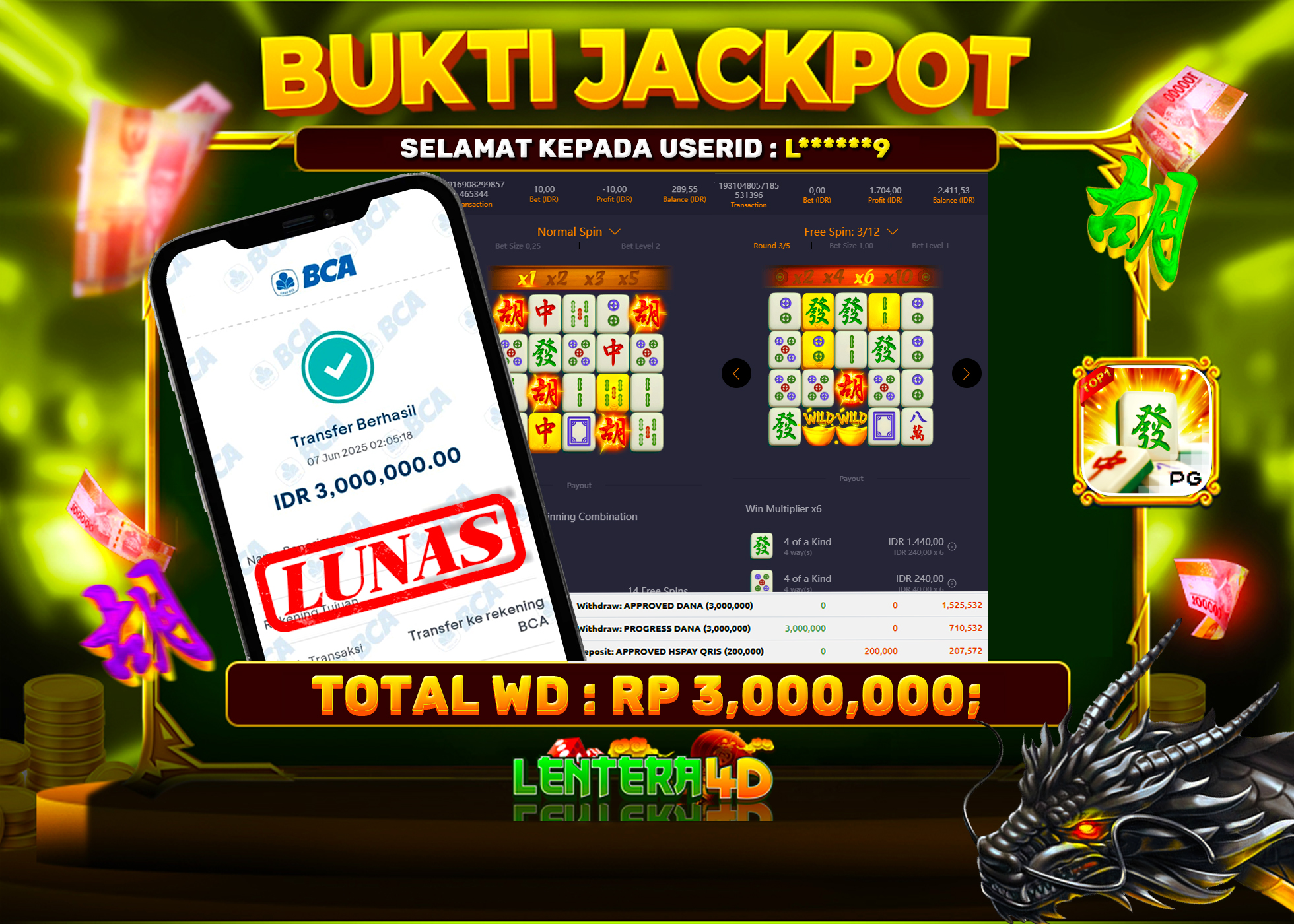 Satu lagi Bukti JP dan Pembarayan Sah Dan Dapat Dipertanggung Jawabkan, WD Berapapun Pasti Dibayar Lunas Hanya di Situs LENTERA4D. Hati Hati Kepada Pihak Pihak Yang Mengatas namakan Pihak LENTERA4D Untuk Melakukan Penipuan.