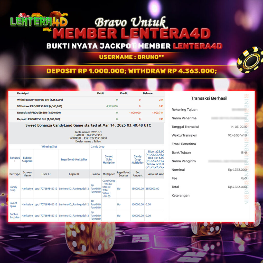 Satu lagi Bukti JP dan Pembarayan Sah Dan Dapat Dipertanggung Jawabkan, WD Berapapun Pasti Dibayar Lunas Hanya di Situs LENTERA 4D. Hati Hati Kepada Pihak Pihak Yang Mengatas namakan Pihak LENTERA4D Untuk Melakukan Penipuan