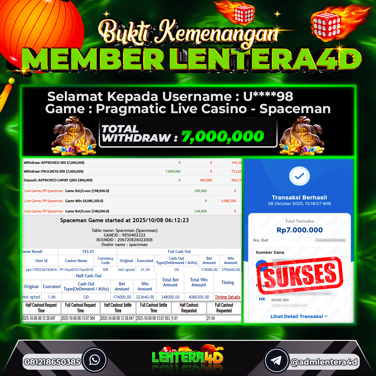 TOTAL KEMENANGAN : Rp. 7.000.000,-