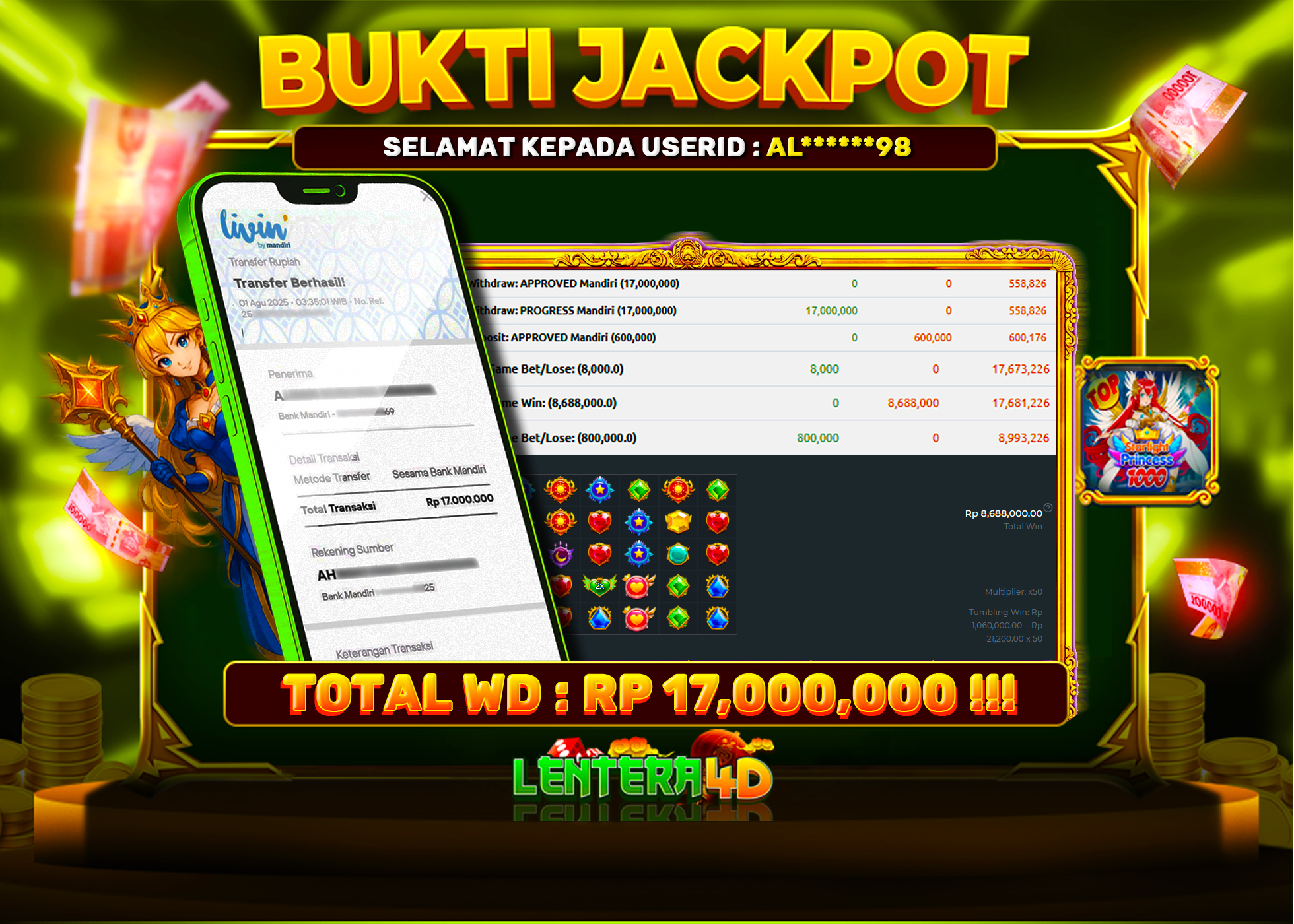 Satu lagi Bukti JP dan Pembarayan Sah Dan Dapat Dipertanggung Jawabkan, WD Berapapun Pasti Dibayar Lunas Hanya di Situs LENTERA 4D. Hati Hati Kepada Pihak Pihak Yang Mengatas namakan Pihak LENTERA4D Untuk Melakukan Penipuan.