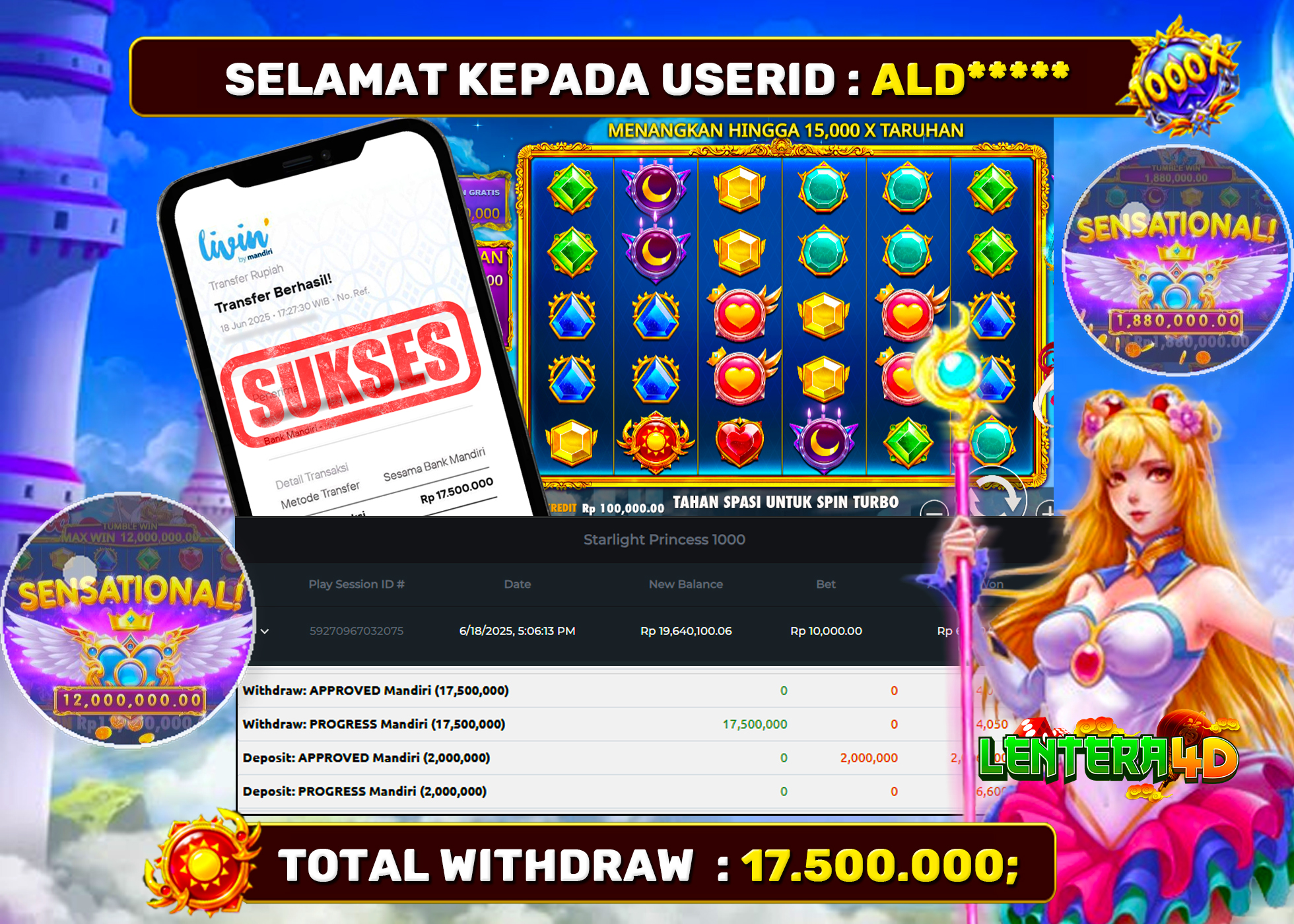 JACKPOT MAIN STARLIGHT PRINCESS 1000 18 JUNI 2025