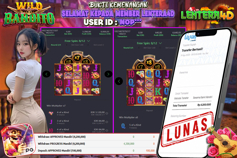 JACKPOT MAIN WILD BANDITO 19 AGUSTUS 2025, Jackpot Slot Gacor, Kemenangan Slot, Bukti Kemenangan Slot, Kemenangan Slot PG SOFT, Menang Slot online, Slot Gacor, Situs Aman Terpercaya, WD Berapapun Pasti DI Bayar Tuntas, Maxwin Slot Online.